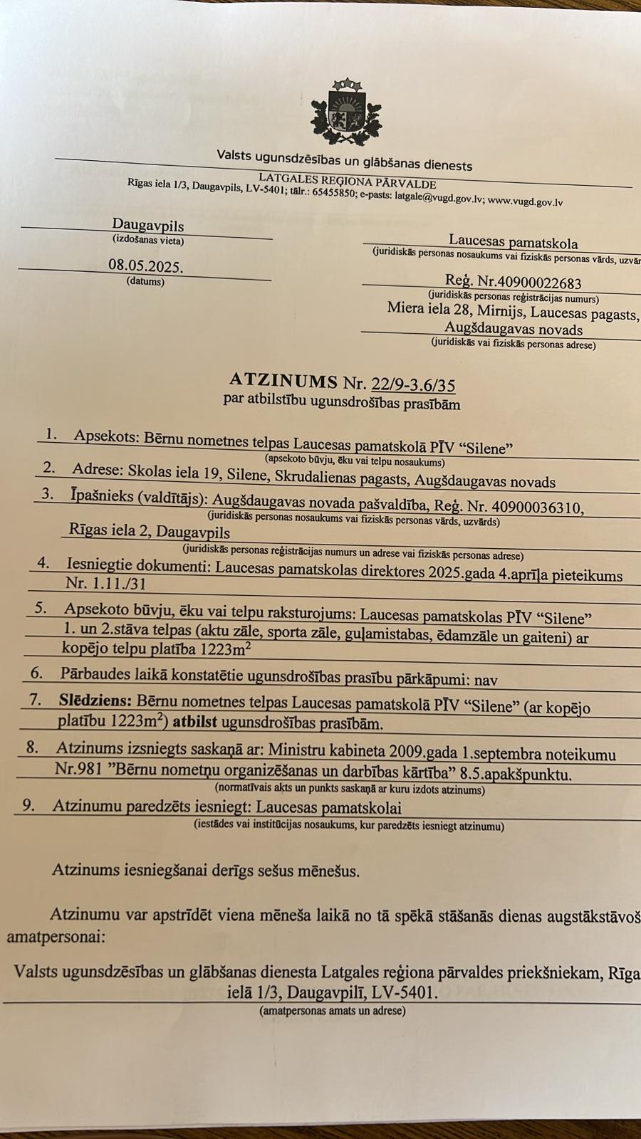Nometņu reģistrā ir informācija, ka atbilstošajai iestādei ir saņemts atzinums par nometnes saskaņošanu.